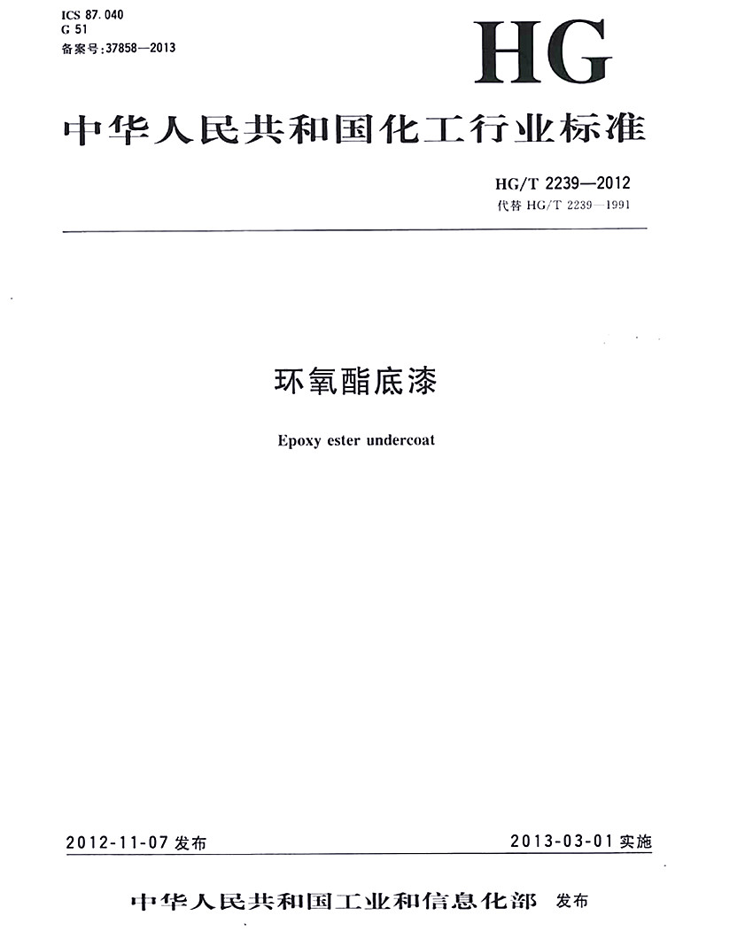 HG/T 2239-2012環氧酯底漆標準代替HG/T 2239-1991是小編摘自HG/T 2239-2012《環氧酯底漆》紙質版,更多防腐涂料執行國家標準和行業標準請參考本網站。