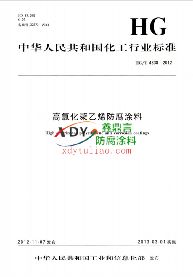 高氯化聚乙烯防腐涂料標準:HG/T 4338-2012