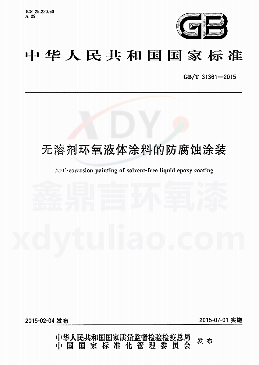 GB/T 31361-2015無(wú)溶劑環(huán)氧液體涂料的防腐蝕涂裝標(biāo)準(zhǔn)