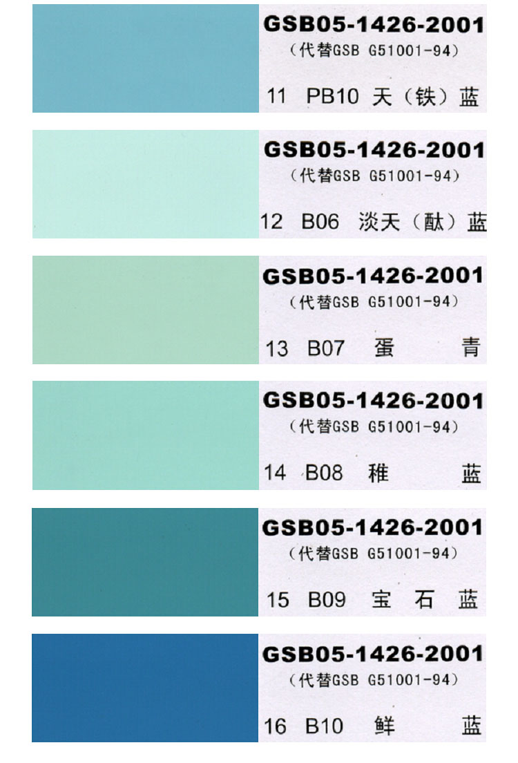 1、本國標色卡(GSB05-1426-2001)可能會因顯示器的問題,給出的顏色色相與實際防腐漆色相比可能會有差異,請客戶理解!