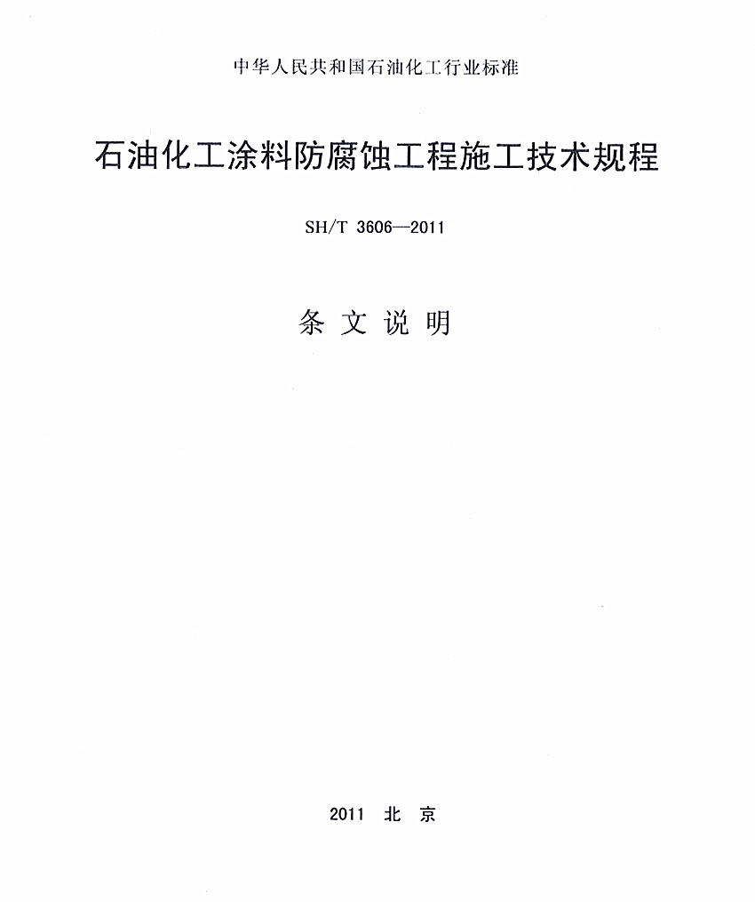 石油化工涂料防腐蝕工程施工技術規程標準SH/T 3606-2011 ICS25.220 P72 備案號:J1266-2011 SH 中華人民共和國石油化工行業標準 SH/T 3606-2011石油化工涂料防腐蝕工程施工技術規程 Technical spccificatinon for construction of anticorrosive coating in pctrochcmical in